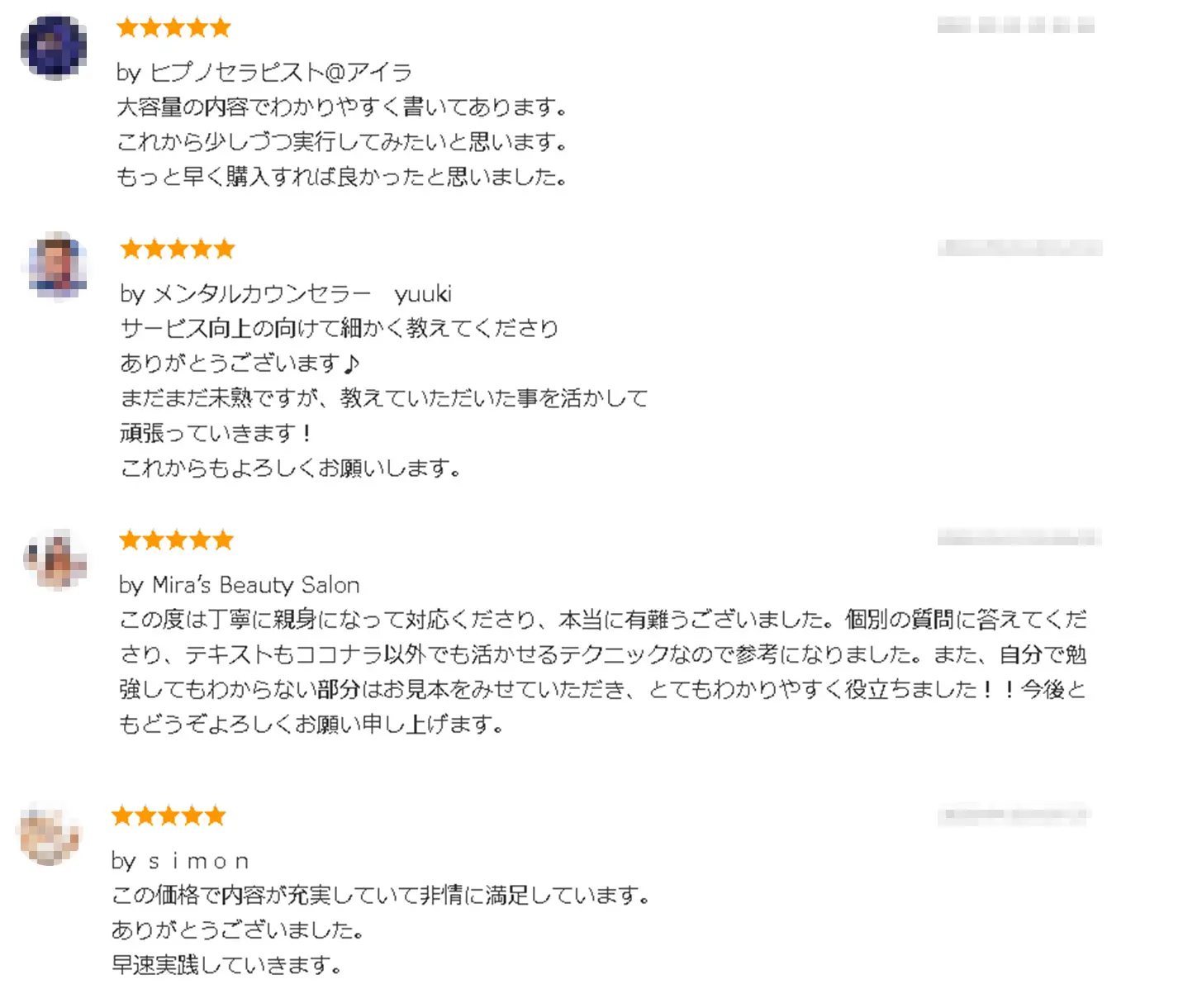 最初に登録したころ、出品者目線でココナラ攻略を販売していました。そのころ頂戴した評価の一部です。